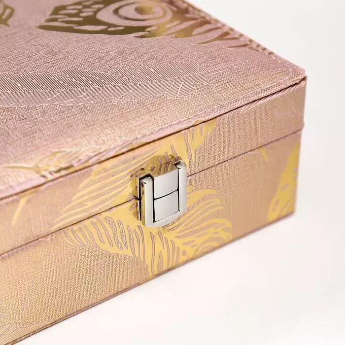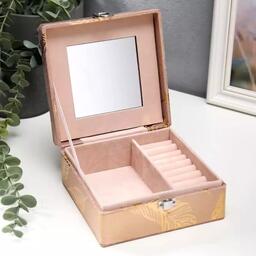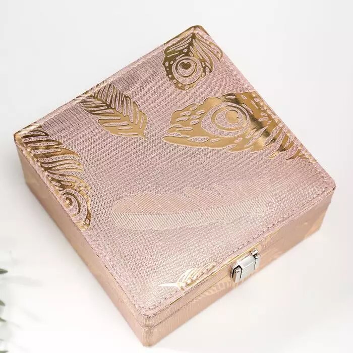 Шкатулка кожзам для украшений "Золотые пёрышки" 7х15х15 см