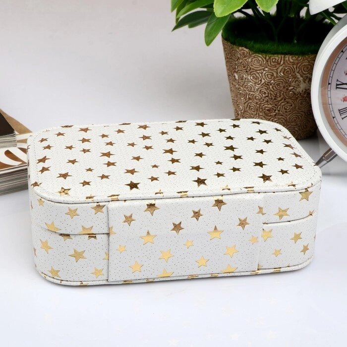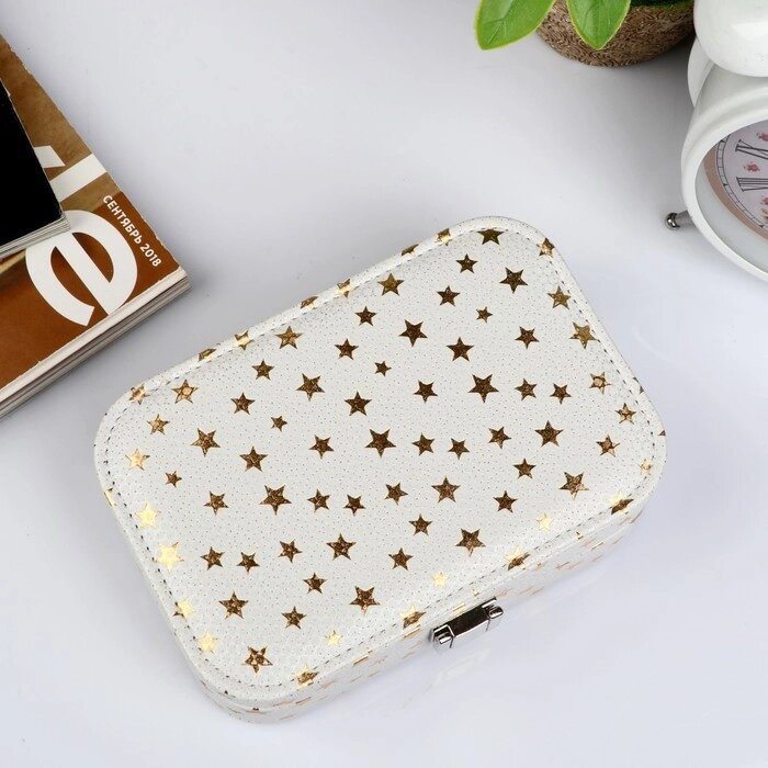 Шкатулка кожзам для украшений "Золотые звёзды" белая 5х15х10 см