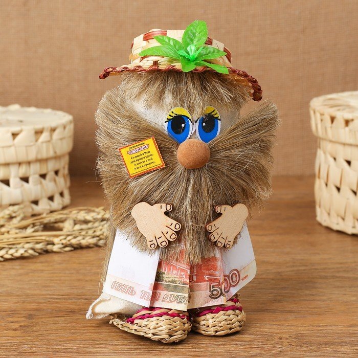 Оберег «Домовой с рублями», в лаптях, 20 см, микс