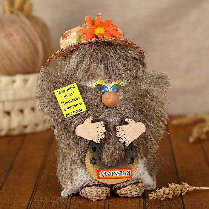 Оберег «Домовой Кузя», в лаптях, 20 см, микс