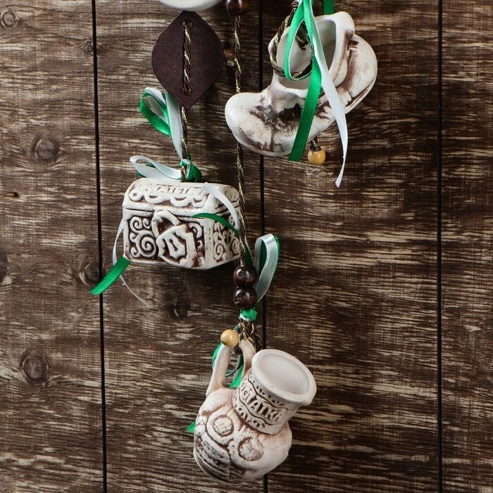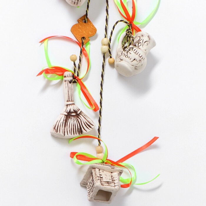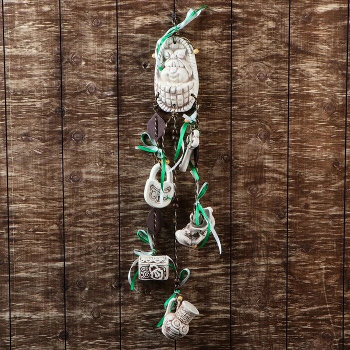 Оберег "Лапоть с домовёнком" с сундуком, микс