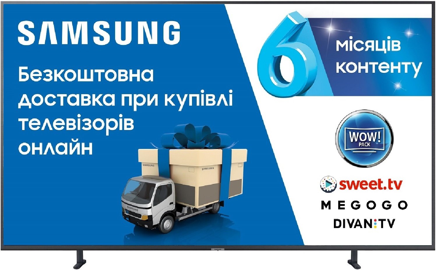 Подивіться, як відображається колірЦей RU8000 4K UHD-телевізор відображає яскраві відтінки і приголомшливі деталі, і навіть дозволяє керувати контентом без допомоги рук. Знаходьте і програвайте музику, фільми і шоу за допомогою простої голосової команди.Випробуйте більш широкий діапазон кольорівМільйони відтінків кольору дають живе, реалістичне зображення, яке не може створити HDTV. Потужна якість зображення4K UHD ПроцесорПотужний процесор оптимізує продуктивність вашого телевізора з якістю зображення 4K.Краса в деталяхHDRНасолоджуйтеся відтінками кольору, які демонструють більше деталей, ніж HDTV може надати.Реальна роздільна здатність 4K UHDРеальна роздільна здатність 4K UHD в 4 рази перевищує дозвіл Full HD.Надтонкий масивУльтра тонкий масив динамічно налаштовує глибину чорного, на яскравість білого, для зображення з сенсаційною контрастом.Дивіться на велику картинуРозміри екрану до 82"Samsung пропонує серію телевізорів, які піднімають розваги на новий рівень.Зроблено для ігорReal Game EnhancerЗабезпечує плавне, реалістичне зображення разом з кінематографічним звуком.Перший телевізор з FreeSync ™Зменшений час затримки і розривЗавдяки технології FreeSync цей телевізор Samsung забезпечує в реальному часі швидкість гри. Скористайтеся чудовою швидкістю і приготуйтеся до грандіозних перемог.Шукайте менше, насолоджуйтеся більшеНаше просте керівництво на екрані - це простий спосіб швидкого пошуку потокового контенту і телепередач.Використовуй свій голос з Біксбі по телевізоруКеруйте телевізором тільки своїм голосом. Спитайте і дізнайтеся, що знає Біксбі.Все в одному з OneRemoteВитончений і тонкий OneRemote автоматично виявляє і контролює всі сумісні підключені пристрої і контент.Побудуй розумний будинок зі SmartThingsПобудуй розумний будинок з панеллю приладів для плавного керування пристроями і технікою розумного будинку.Безшовні з'єднанняSamsung TV працює з іншими розумними пристроямиAmazon AlexaSamsung UHD TV працює з Alexa, тому ваше життя стане простіше. Підключити пристрої з підтримкою Alexa легко. Завдяки сумісності Samsung UHD TV, Alexa вмикає ваш телевізор, перемикає канали, регулює гучність і багато іншого.Google AssistantSamsung UHD TV працює з Google Assistant, щоб зробити ваше життя простіше. змінюйте канали, відрегулюйте гучність, керуйте відтворенням і т. д. за допомогою голосу.