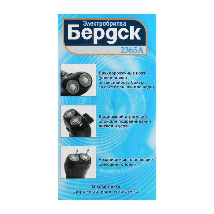 Электробритва "Бердск" 2365A, роторная, 2 головки, сухое бритьё, от АКБ, чёрная