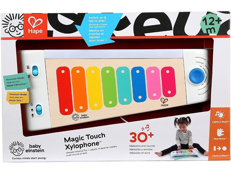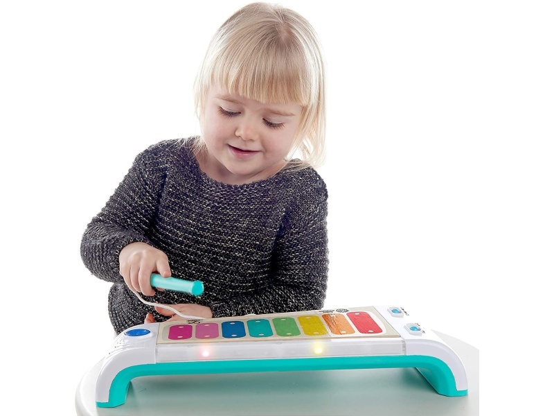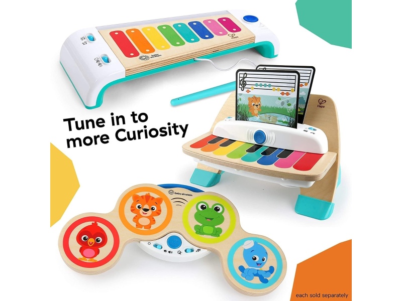 Особенностидеревянная игрушка с технологией волшебного прикосновения воспроизводит звуки настоящих инструментов одним касанием.30+ мелодий и звуков; цветные огни и клавиши способствуют изучению цвета; требуется 3 батарейки АА. (в комплекте); размер: 34х14х6