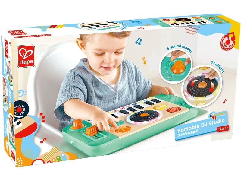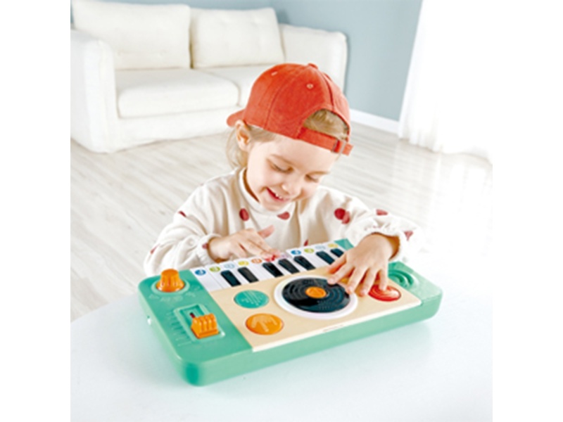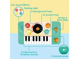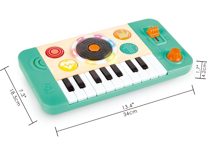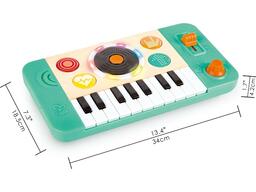 Особенностимини-концерт дома-пусть маленький маэстро сочиняет мелодии с помощью 18-клавишной клавиатуры; выберите из 18 забавных звуковых эффектов, пяти фоновых мелодий и четырех звуков ди-джея для микширования; есть ползунок темпа для изменения скорости звука; размер 34х18,5х47