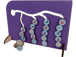 - Особенности изготовлен из дерева экологически чистого и гипоаллергенного материала; представляет собой однотонную двухстороннюю панель с прорезями дорожками (лабиринтом); в комплект так же входят двухсторонние штанги для передвижения по лабиринту