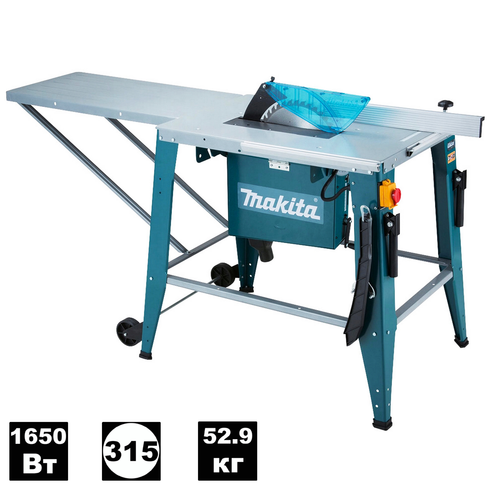 Настольная пила Makita 2712 применяется для быстрой и очень точной раскройки заготовок. Для удобства работы с большими деталями конструкцией агрегата предусматривается наличие прочного алюминиевого стола, а также дополнительного удлинительного стола размером 400х800 мм. Наклоняемый пильный диск позволяет резать заготовки под углом 45 градусов. Подключение оборудования к сети осуществляется при помощи шнура длиной 3 м. Особенности: Безопасная эксплуатация Пильный диск станка закрывается специальным кожухом, который защищает оператора от вылета искр и стружки. Быстрая остановка двигателя На станине настольной пилы Makita 2712 располагается аварийный выключатель, который позволяет оперативно останавливать двигатель в случае возникновения чрезвычайной ситуации. Простота перемещения Два колеса существенно упрощают перемещение модели по рабочей площадке. Преимущества: Возможно подключение пылесоса для поддержания чистоты в рабочей зоне; Жесткая рама; Параллельный упор для распила однотипных деталей; Простота эксплуатации. Комплектация: Циркулярная пила; Параллельный упор; Толкатель; Ключ; Шестигранный ключ; Пильный диск; Удлинительный стол; Упаковка.Произведено: Модель выпускается с 2016 года Япония — родина бренда Китай — страна производства Характеристики: Прочие Производитель Makita Тип сетевой Мощность, Вт 1650 Диаметр диска, мм 315 Диаметр посадочного отверстия, мм 30 Число оборотов, об/мин 2950 Глубина пропила под углом 90°, мм 85 Глубина пропила под углом 45°, мм 58 Угол наклона, град 45 Наличие Bluetooth нет Вес, кг 52.9 Поставляется коробка Гарантия 12 месяцев Страна производства Китай Артикул 2712