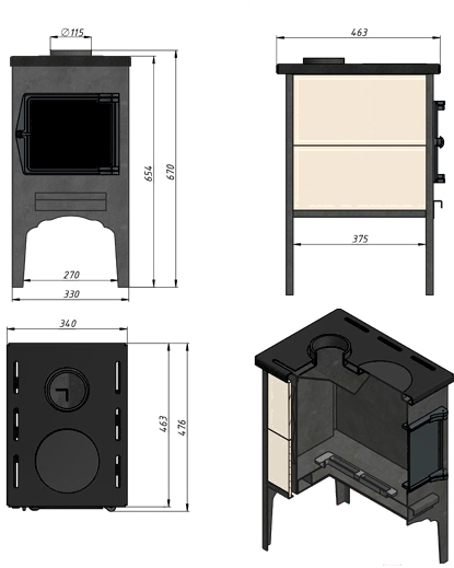 - Особенности конструкции зольный ящик, варочная панель, колосник