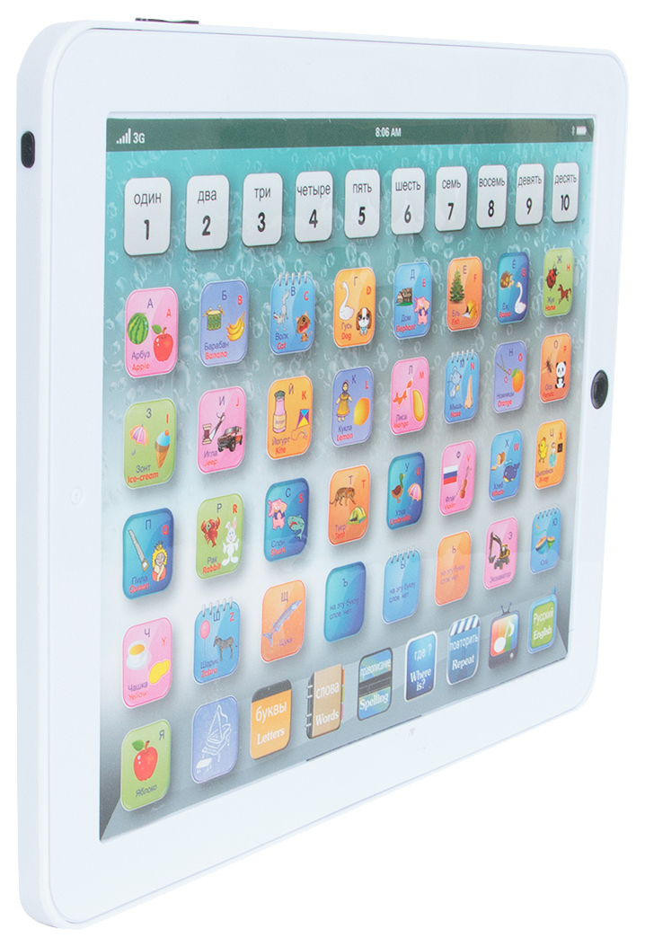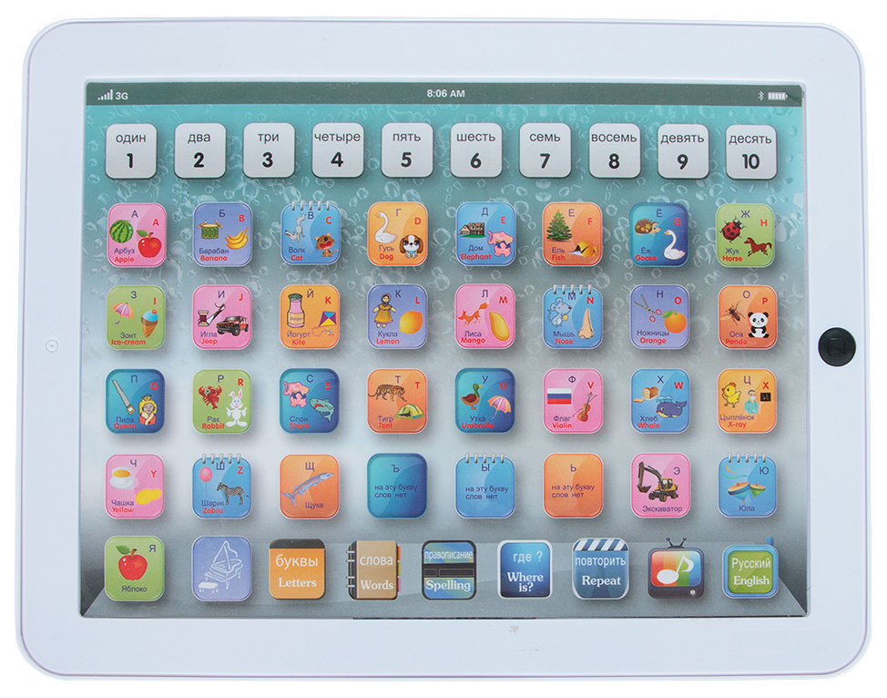 Детский развивающий планшет от производителя Zhorya изготовлен из прочного пластика и выглядит, как настоящий, благодаря чему он может привлечь внимание ребенка, отвлекая его от телефонов и других гаджетов, принадлежащих родителям.