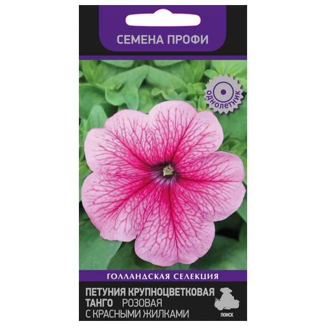 Семена цветов Поиск 737370 Петуния крупноцветковая Танго Розовая с красными жилками 15 шт.