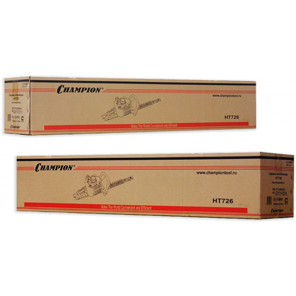 Представленная модель оборудована двухтактным мотором, мощность которого составляет одну лошадиную силу. Для обеспечения долговечности цилиндр мотора имеет хромированное покрытие. Длина режущего элемента составляет 72 сантиметра, что обеспечивает эффективную и быструю болших площадей. Объемный топливный бак оснащен большим отверстием, что гарантирует удобную заправку. А для простого отслеживания расхода топлива бак имеет полупрозрачные стенки. Кусторез Champion HT726R в своей конструкции имеет защитный кожух из прочной пластмассы, который надежно защитит пользователя от возможных травм в процессе эксплуатации. Быстрому запуску способствует электронное зажигание и наличие праймера для подкачки топлива в карбюратор. Максимально эффективная работа достигается благодаря двусторонней заточки ножей. Небольшой вес позволяет без особых усилий держать инструмент в руках и не утомляться в процессе работы. Скромные габариты делают хранение кустореза максимально простым.