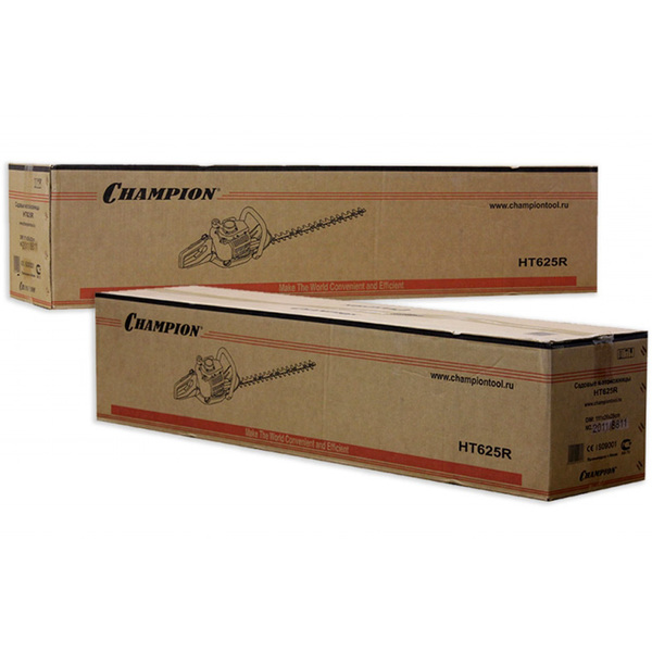 Представленная модель оборудована двухтактным мотором, мощность которого составляет одну лошадиную силу. Для обеспечения долговечности цилиндр мотора имеет хромированное покрытие. Положение рукоятки можно легко регулировать в 5 положениях, поворачивая ее на девяносто градусов в правую и левую сторону. Длина режущего элемента составляет шестьдесят сантиметров, что обеспечивает эффективное прореживание густых кустов. Объемный топливный бак оснащен большим отверстием, что гарантирует удобную заправку. А для простого отслеживания расхода топлива бак имеет полупрозрачные стенки. Кусторез Champion HT625R в своей конструкции имеет защитный кожух из прочной пластмассы, который надежно защитит пользователя от возможных травм в процессе эксплуатации. Быстрому запуску способствует электронное зажигание и наличие праймера для подкачки топлива в карбюратор. Максимально эффективная работа достигается благодаря двусторонней заточки ножей. Небольшой вес позволяет без особых усилий держать инструмент в руках и не утомляться в процессе работы. Скромные габариты делают хранение кустореза максимально простым.