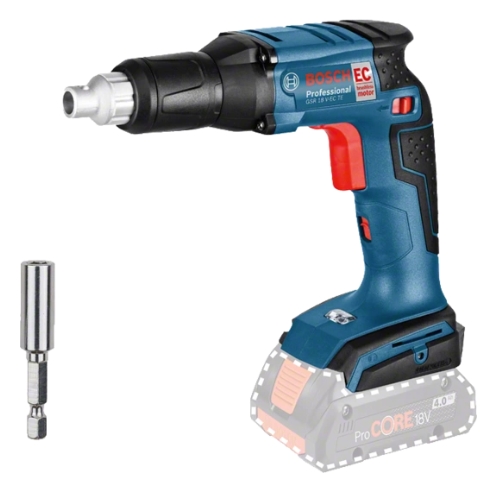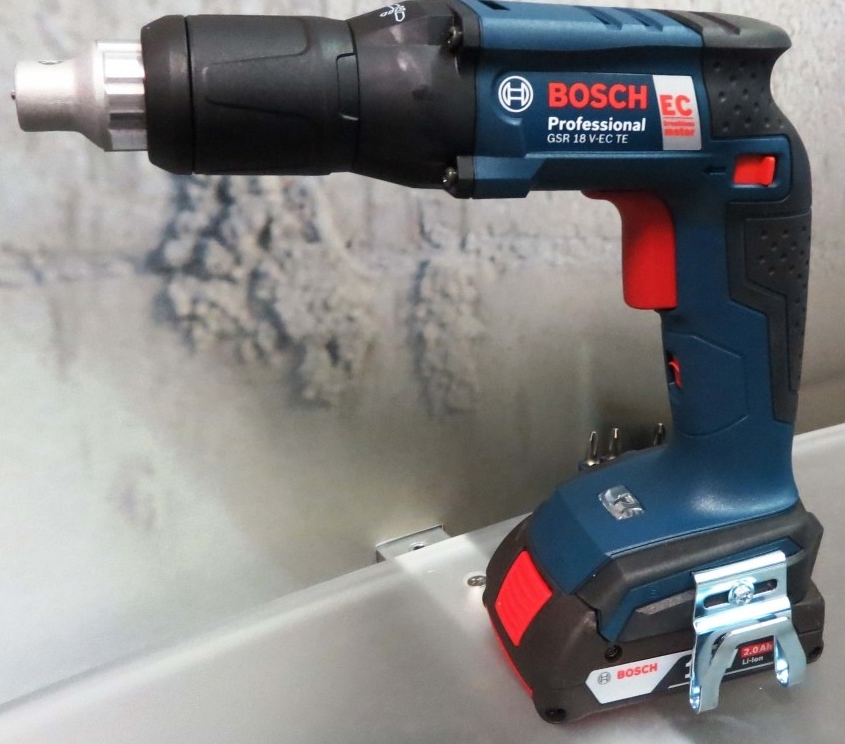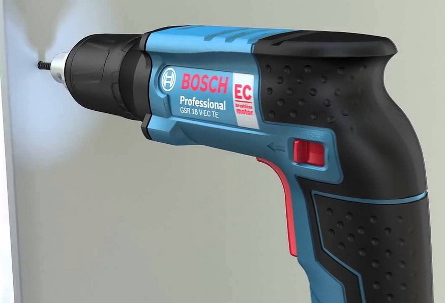 Аккумуляторный шуруповерт Bosch GSR 18 V-EC TE оснащен бесщеточным двигателем, что продлевает срок его службы. Мягкая накладка на рукоятке препятствует скольжению руки во время работы. Скорость вращения шпинделя регулируется усилием нажатия на клавишу "Пуск", что очень удобно при выполнении таких операций, как наживление саморезов.