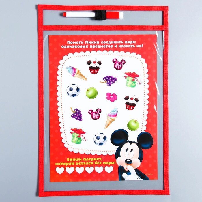 Развивающая игра "Пиши-стирай" в папке с карточками и маркером, Микки Маус и его друзья