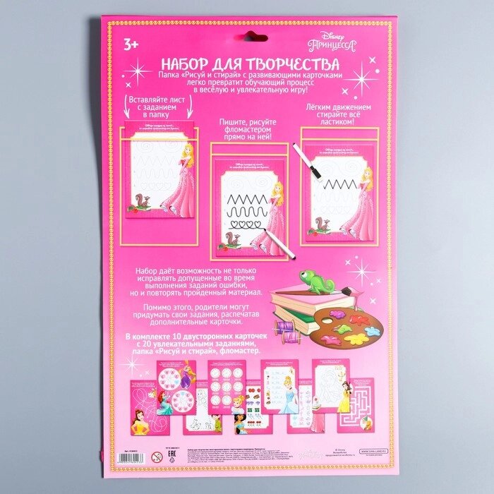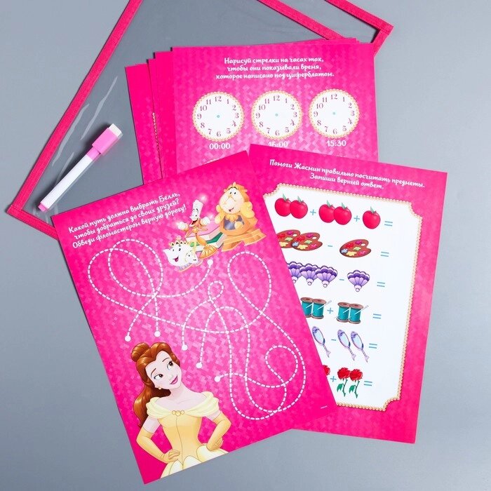 Развивающая игра "Пиши-стирай" в папке с карточками и маркером, Принцессы