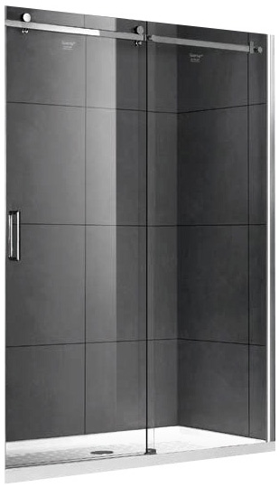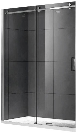 Душевая раздвижная дверь в нишу с фиксированным стеклом. Конструкция из прозрачного, закаленного стекла (8 мм) и полированного, хромированного профиля.