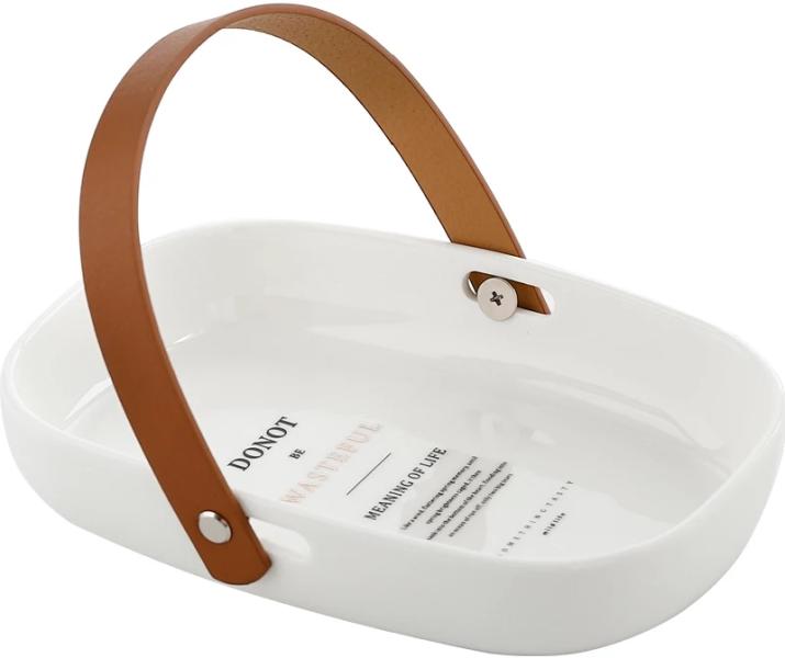 - Дополнительная информация сервировочная тарелка из прочной глазурованной керамики с ручкой из эко-кожи. Размер: 19.7х14 см.