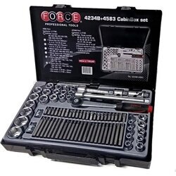 Набор 6гр. FORCE 4234B+4583 1/2 головок с приспособлениями и вкладышем (биты с головками Е)