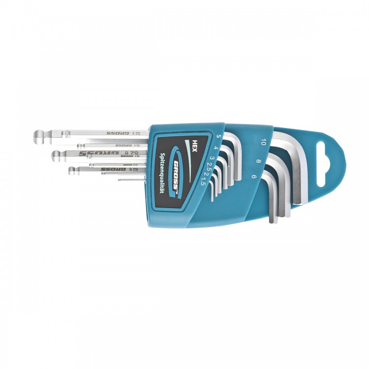 Набор ключей имбусовых HEX, 1,5-10 мм, S2, 9 шт, удлиненные с шаром, сатинированные Gross 41456933