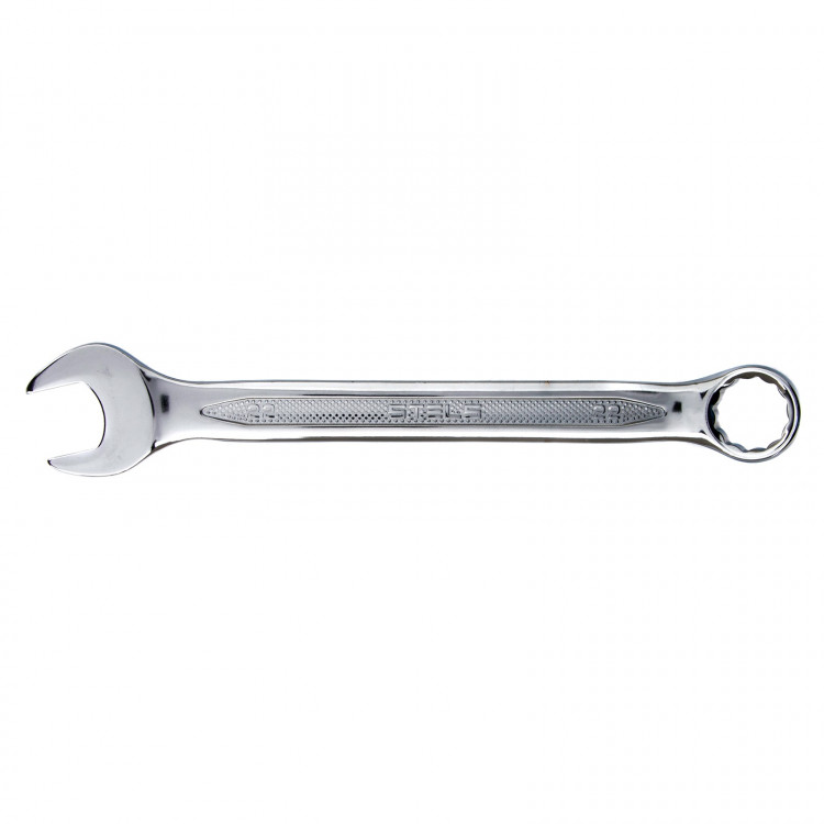 Ключ комбинированный торговой марки STELS предназначен для монтажа/ демонтажа резьбовых соединений. Изготовлен из высококачественной хромованадиевой (CrV) стали. Твердость 43-45 HRC. Ключ с одной стороны оснащен захватом открытого типа – рожковым и накидным (кольцевым) с другой стороны. Профиль кольцевого зева имеет 12 граней, что увеличивает площадь соприкосновения рабочих поверхностей и снижает риск деформации граней крепежа при монтаже. Угол наклона кольцевого зева относительно плоскости ключа в 15 градусов делает монтаж более удобным. Хромированное зеркальное покрытие ключа улучшает антикоррозийные свойства инструмента. Имеет специальную форму поверхности для более надежного удержания ключа в руке.
