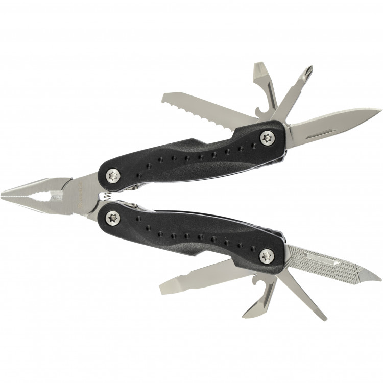 Многофункциональный инструмент-трансформер (мультитул) пригодится на природе и дома, на охоте и рыбалке, на пикнике и в путешествии, в автомобиле и гараже.Функции: ДлинногубцыЗахват для удерживания полукруглых предметовКусачкиДве открывалки (для бутылок и банок)Пилка для ногтей двусторонняяПилаНожКрестовая отверткаТри плоские отвертки (большая, средняя, малая)
