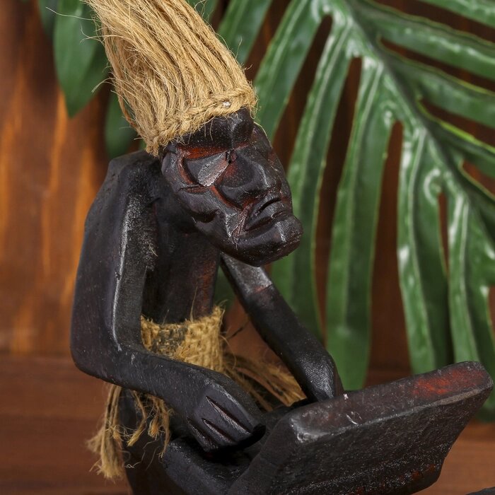 Сувенир дерево календарь "Абориген с компьютером" 16х15х11 см