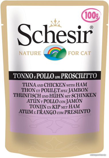 - Ингредиенты Тунец 34%Куриное филе 25%Ветчина 4%Рис 1,5%