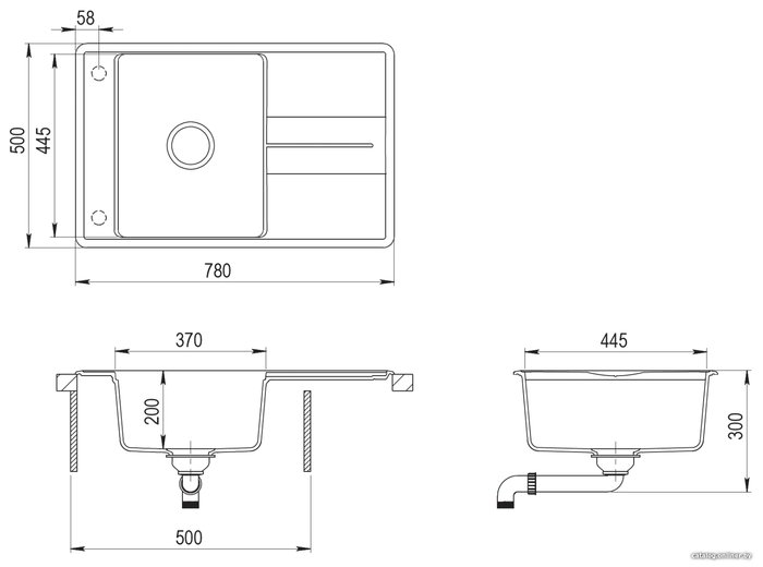 - Ширина мойки 78 см