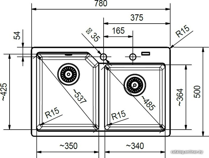 - Диаметр сливного отверстия 3.5"