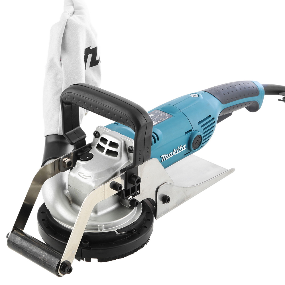 Шлифмашина по бетону Makita PC5001C предназначена для выравнивания и шлифовки бетонных поверхностей. Электронный контроль оборотов двигателя позволяет качественно обрабатывать материал. Плавный пуск предохраняет от рывков при включении. Фиксирование кнопки включения обеспечивает комфортную продолжительную работу. Особенности: Легкое управление Дополнительная рукоятка обеспечивает простой контроль инструмента и позволяет работать обеими руками. Чистая работа Система пылеудаления с пылесборным мешком сохраняет чистоту на рабочей поверхности. Удобный хват Прорезиненная ручка обеспечивает надежный хват и предотвращает проскальзывание шлифмашины по бетону Makita PC5001C. Преимущества: Двойная изоляция для работы без заземления; Электронный контроль оборотов двигателя шлифмашины Makita поддерживает скорость вращения диска под нагрузкой; Плавный пуск обеспечивает старт без рывков; Возможность шлифования поверхности у края угла; Электронная защита двигателя от перегрузки; Защита от непреднамеренного пуска с индикатором подключения к сети и срабатывания данной защиты; Блокировка кнопки включения - для комфортной продолжительной работы; Блокировка шпинделя для легкой и быстрой замены диска; Шлифование поверхности без использования воды; Стандартная посадка шпинделя - 22,23 мм; Легкий доступ к щеткам. Комплектация: Шлифователь; Алмазная чашка; Гаечный ключ; Шестигранный ключ; Пылесборник; Чемодан.Произведено: Япония — родина бренда Китай — страна производства