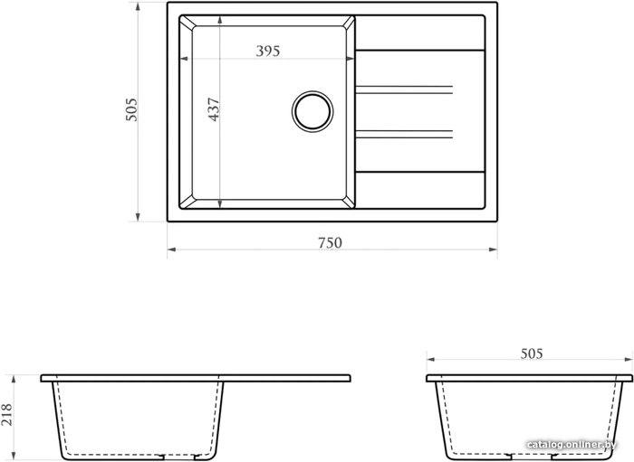 - Ширина мойки 75 см