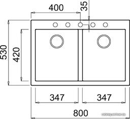 - Ширина мойки 80 см