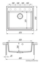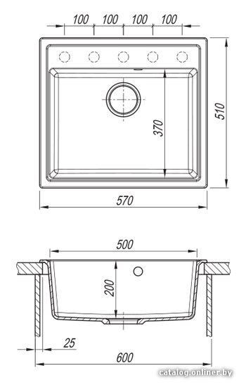 - Ширина мойки 57 см