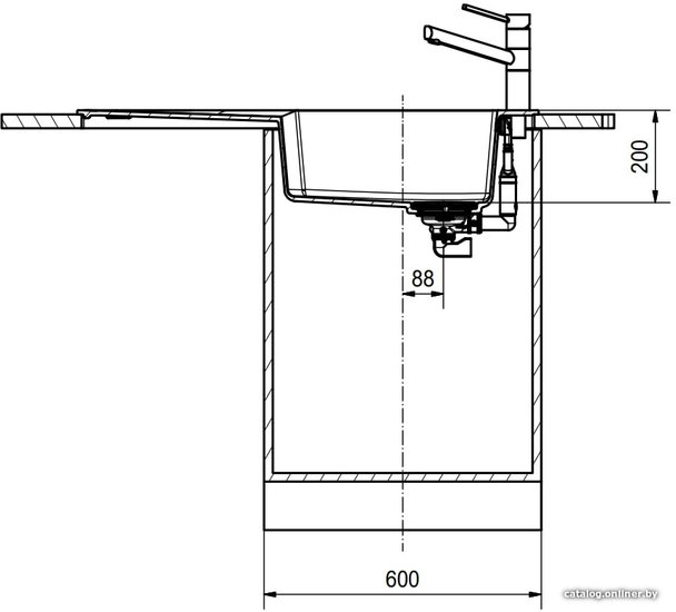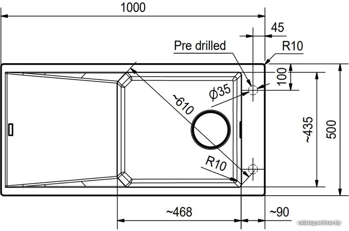 • Комплектация выпуск 3,5" вентиль-автомат, клапан управления круглой формы, скрытый слив, скрытый перелив