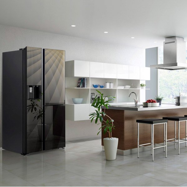 Отдельно стоящий, трехкамерный, компоновка Side-by-side, No Frost, класс энергопотребления A++, объем холодильной камеры 372 л, объем морозильной камеры 212 л, электронное управление, встроенные ручки, дисплей.