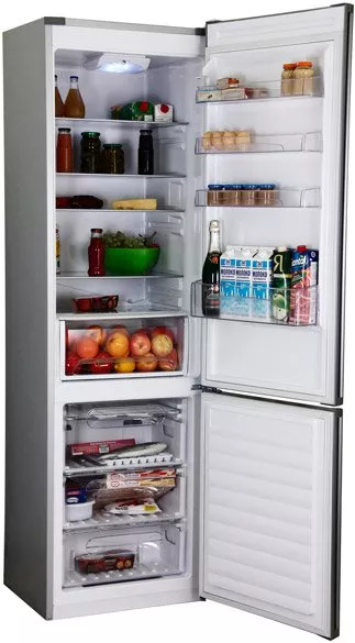 Отдельно стоящий, двухкамерный, компоновка морозильник внизу, класс энергопотребления A, объем холодильной камеры 237 л, объем морозильной камеры 67 л, электромеханическое управление, встроенные ручки.