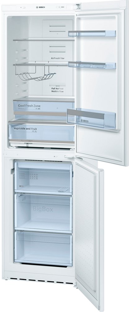 Отдельно стоящий, двухкамерный, компоновка морозильник внизу, No Frost, класс энергопотребления A, объем холодильной камеры 221 л, объем морозильной камеры 94 л, зона свежести (BioFresh), электронное управление, встроенные ручки, дисплей.
