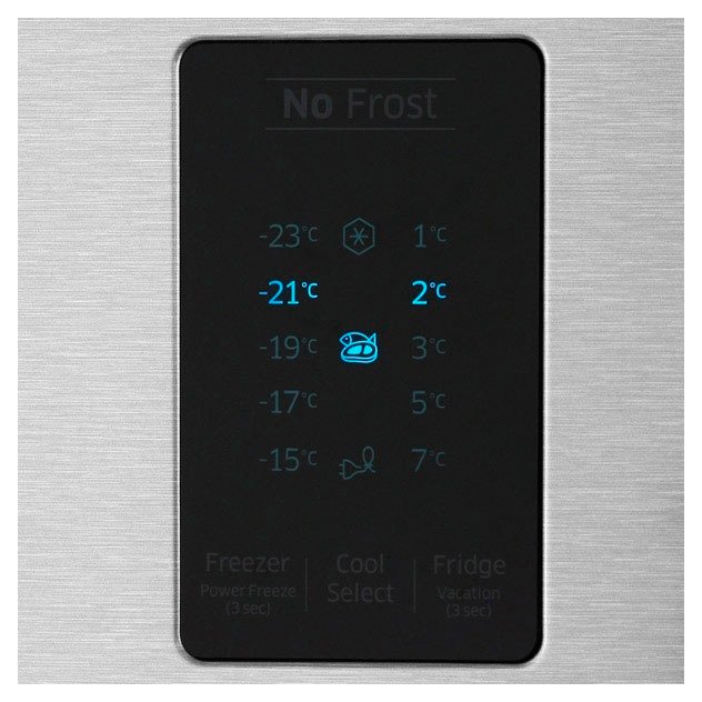 Отдельно стоящий, двухкамерный, компоновка морозильник внизу, No Frost, класс энергопотребления A+, объем холодильной камеры 216 л, объем морозильной камеры 118 л, электронное управление, внешние ручки, дисплей.
