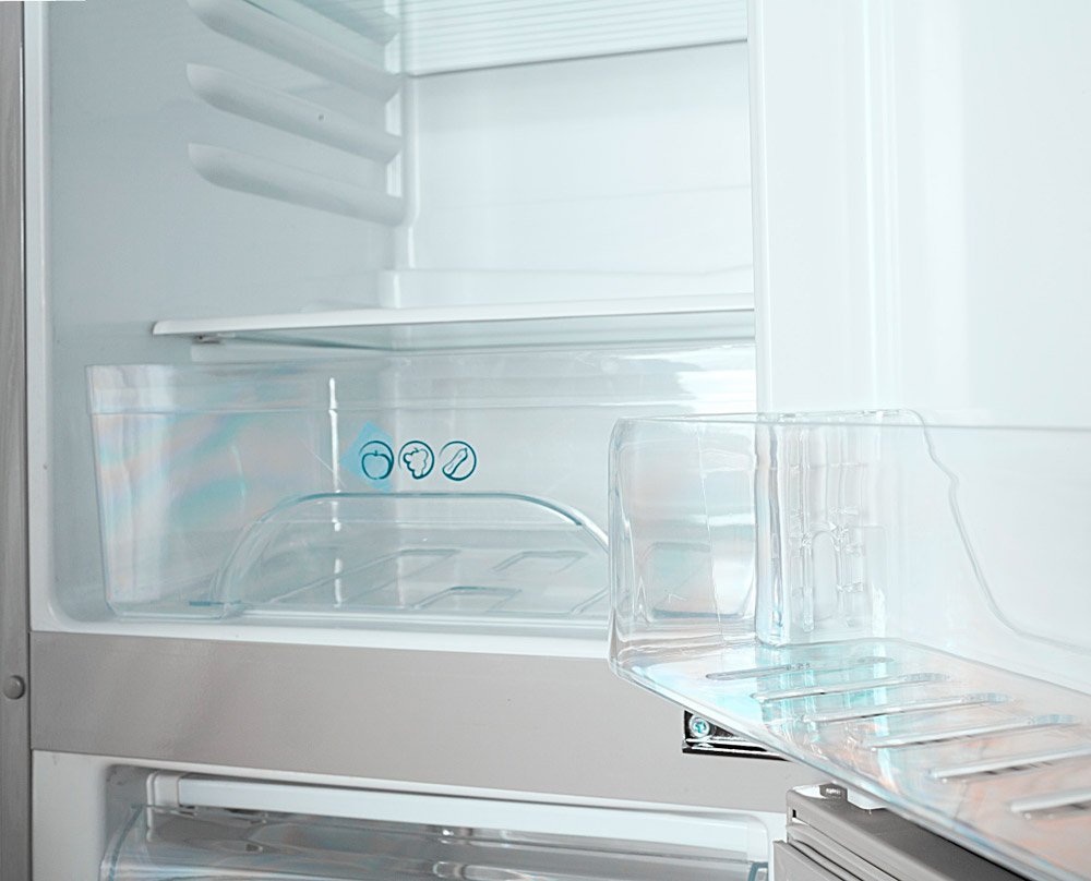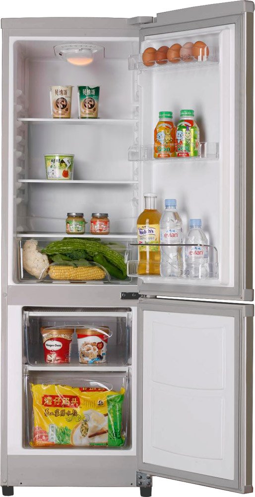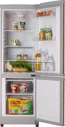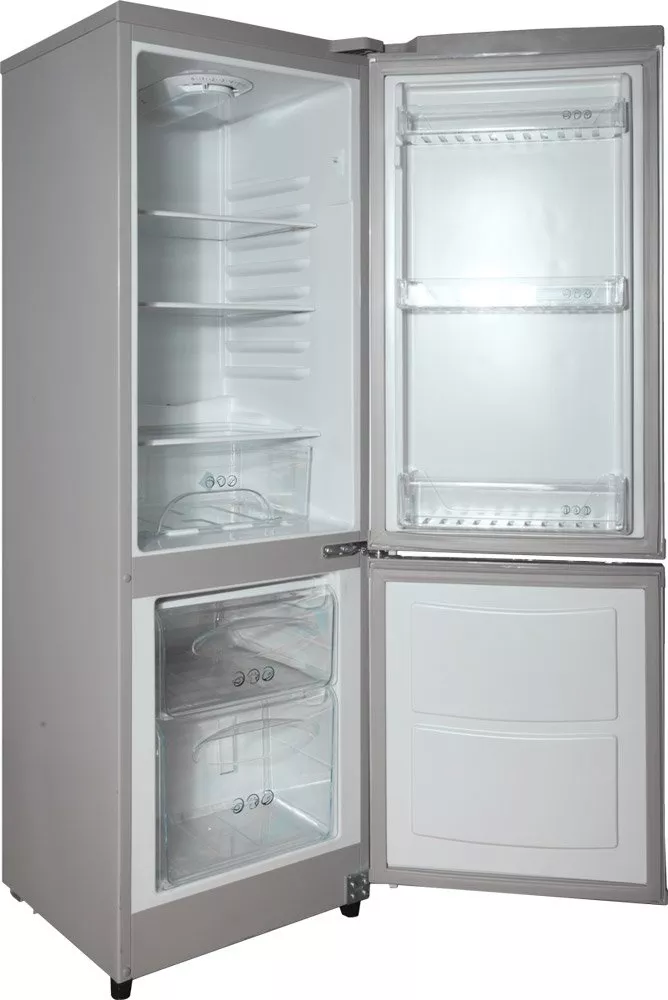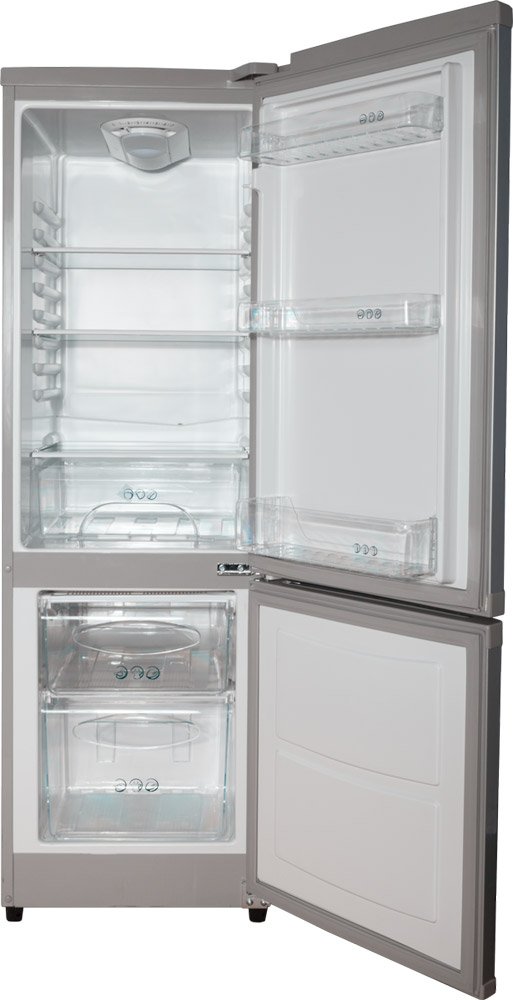 Отдельно стоящий, двухкамерный, компоновка морозильник внизу, класс энергопотребления A, объем холодильной камеры 106 л, объем морозильной камеры 32 л, электромеханическое управление, встроенные ручки.