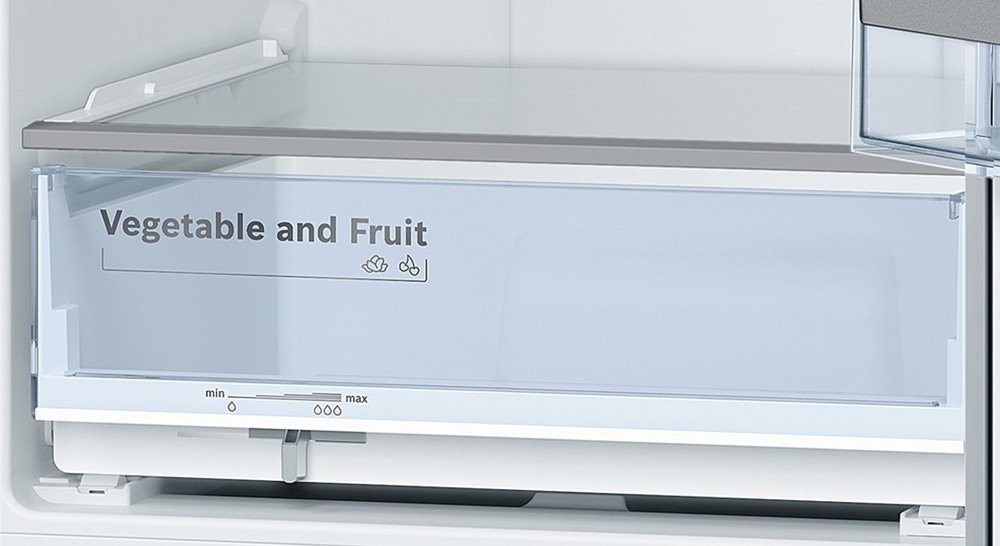 Отдельно стоящий, двухкамерный, компоновка морозильник внизу, No Frost, класс энергопотребления A, объем холодильной камеры 221 л, объем морозильной камеры 94 л, электронное управление, встроенные ручки.