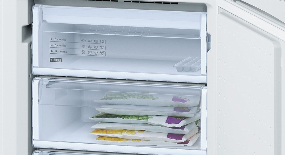 Отдельно стоящий, двухкамерный, компоновка морозильник внизу, No Frost, класс энергопотребления A, объем холодильной камеры 221 л, объем морозильной камеры 66 л, электронное управление, встроенные ручки, дисплей.
