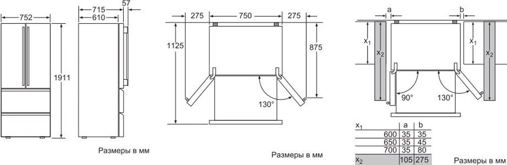 - Компоновка Морозильник внизу (Французская дверь)