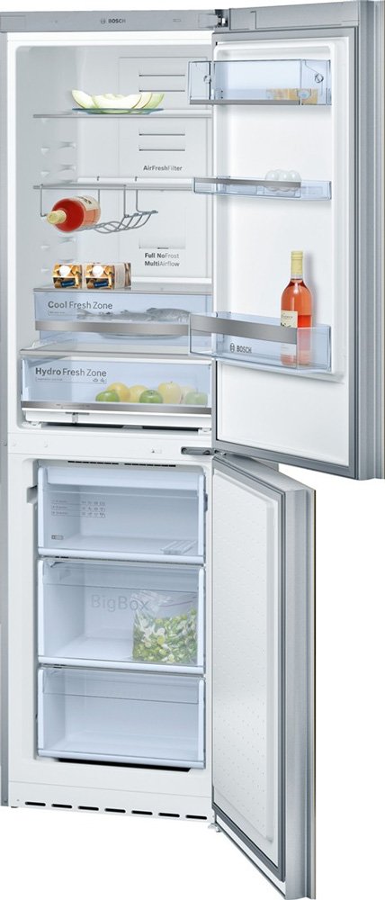 Отдельно стоящий, двухкамерный, компоновка морозильник внизу, No Frost, класс энергопотребления A, объем холодильной камеры 221 л, объем морозильной камеры 94 л, зона свежести (BioFresh), электронное управление, встроенные ручки, дисплей.