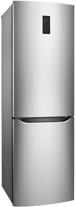 Отдельно стоящий, двухкамерный, компоновка морозильник внизу, No Frost, класс энергопотребления A+, объем холодильной камеры 225 л, объем морозильной камеры 87 л, электронное управление, встроенные ручки, дисплей.