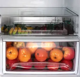 Отдельно стоящий, двухкамерный, компоновка морозильник внизу, No Frost, класс энергопотребления A, объем холодильной камеры 201 л, объем морозильной камеры 73 л, зона свежести (BioFresh), электронное управление, встроенные ручки, дисплей.