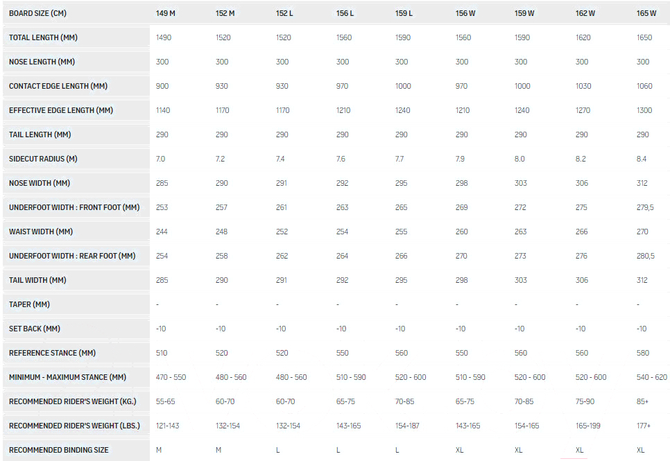 • Ширина талии сноуборда 25.2 см