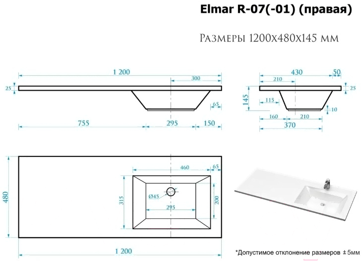 • Дополнительно в комплекте сифон, кронштейны (1 шт.), раковина