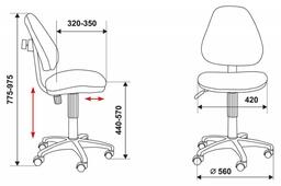 Для детей; материал обивки: ткань; механизм качения; ролики; регулировка высоты; сиденье имеет 2 варианта сборки (перемещается относительно платформы), за счет этого меняется глубина сиденья; спинка пружинит и перемещается вверх-вниз по опоре; максимальная нагрузка: 100 кг.