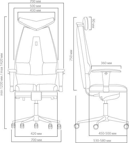 Для руководителя, для персонала, материал обивки: искусственная кожа, механизм качания, ролики, подлокотники.