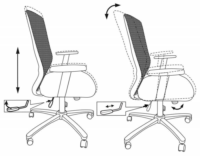 Для персонала, материал обивки: ткань, сетка, механизм качания, ролики, подлокотники.